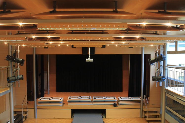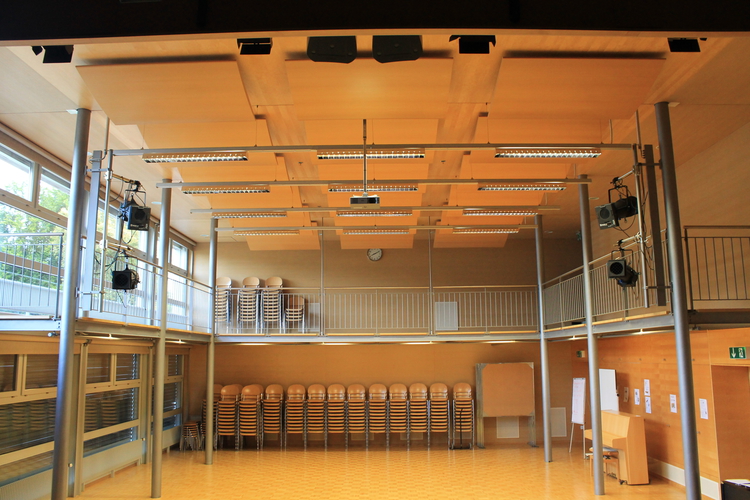 Die Aula mit Galerie befindet sich im 1. OG (Galerie 2. OG) in der Primarschule Flamatt. Sie steht Vereinen und Institutionen innerhalb/ausserhalb der Gemeinde, jedoch nicht Privatpersonen zur Verfügung.